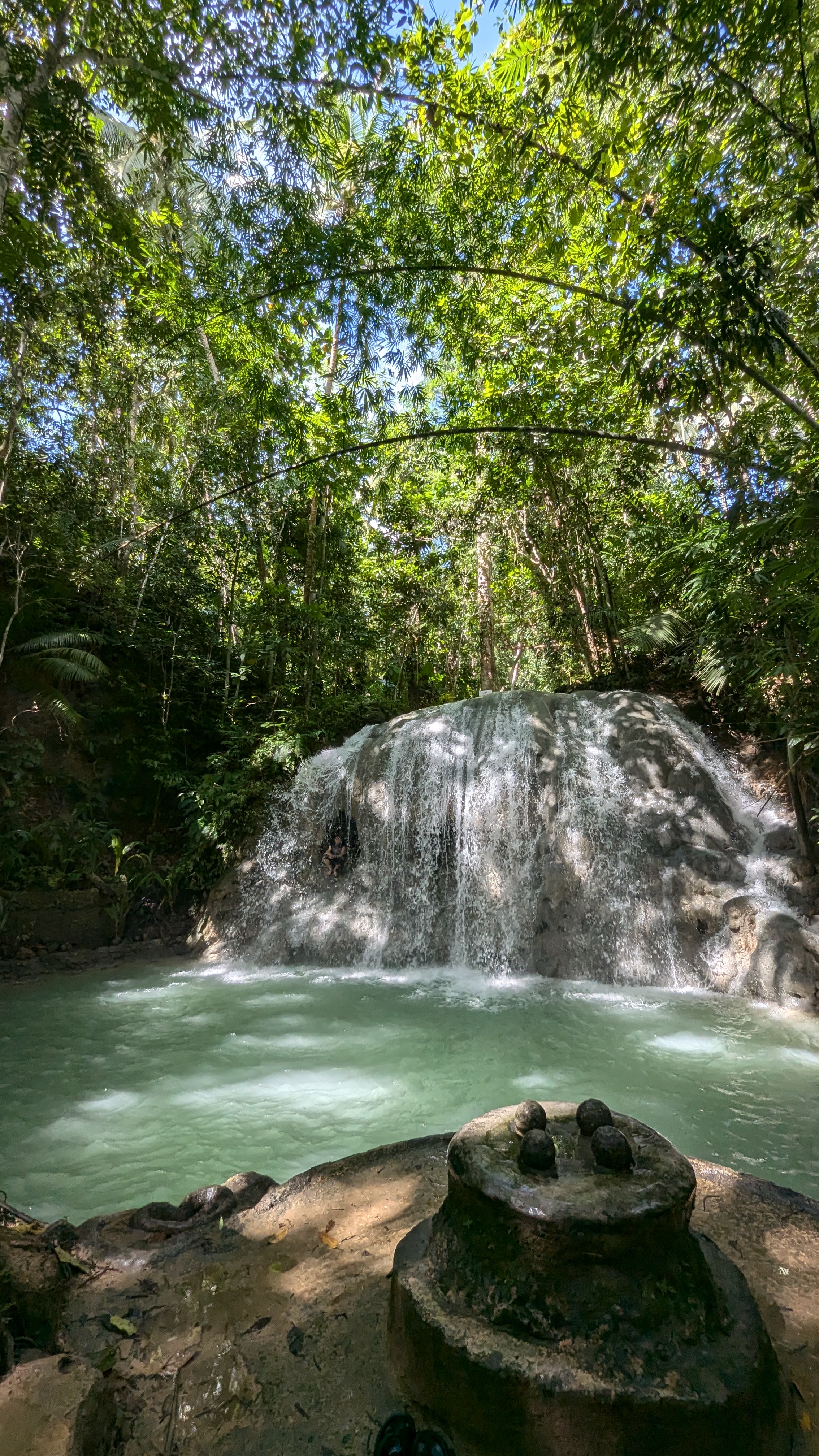 Nach drei mehr oder weniger regenreichen Tagen zieht es uns weiter nach Siquijor. Die Szenerie auf der kleinen Voodoo-Insel sieht schonmal vielversprechend aus. Bei Sonnenschein und blauem Himmel tuckern wir mit einem Tricycle rund 40 Minuten Richtung Unterkunft. Bei jedem Anstieg habe ich etwas Bammel, dass wir aussteigen und schieben müssen. Ob der Grosäti auch im selbst gebastelten Gefährt lebt habe ich leider wegen der Sprachbarriere nicht herausgefunden. Aber er führt ein Zahnbürstli, Zahnpasta und WD40 mit sich. Unser Bungalow ist ein Traum. Ein härziger Pool tront zwischen 6 Bungalows und zwischen Palmen gebettet schlafen wir zum Meeresrauschen ein. Obwohl wir direkt am Meer sind, können wir hier nicht baden wegen den Wellen und dem mausetoten Riff im Meer. Also mieten wir uns wieder ein Rollerchen und furzen um die Insel. Fazit nach der ersten Inselrundfahrt. Es gibt eine handvoll kleiner Strände, doch überall zahlen wir Eintritt und sitzen dann Tüechli and Tüechli mit allen Touristen im Sand. Im Minutentakt fliegen uns Drohnen um die Ohren. Überall sind die Influenzer stundenlang am posieren. Die Insta Boyfriens geben hier vollen Einsatz. Sie kriechen durch den Sand, legen sich bäuchlings ins seichte Gewässer um den perfekten Shot ihrer Angebeteten zu erknipsen und am Schluss ist sie dann trotzdem hässig auf ihn, weil das Foto nicht ihren Wünschen entspricht. Irgenwann finden wir dann den Little Boracay Beach und können nach über einer Woche zum ersten Mal die Sonne und das Meer geniessen bevor wieder ein Regenschauer kommt.
