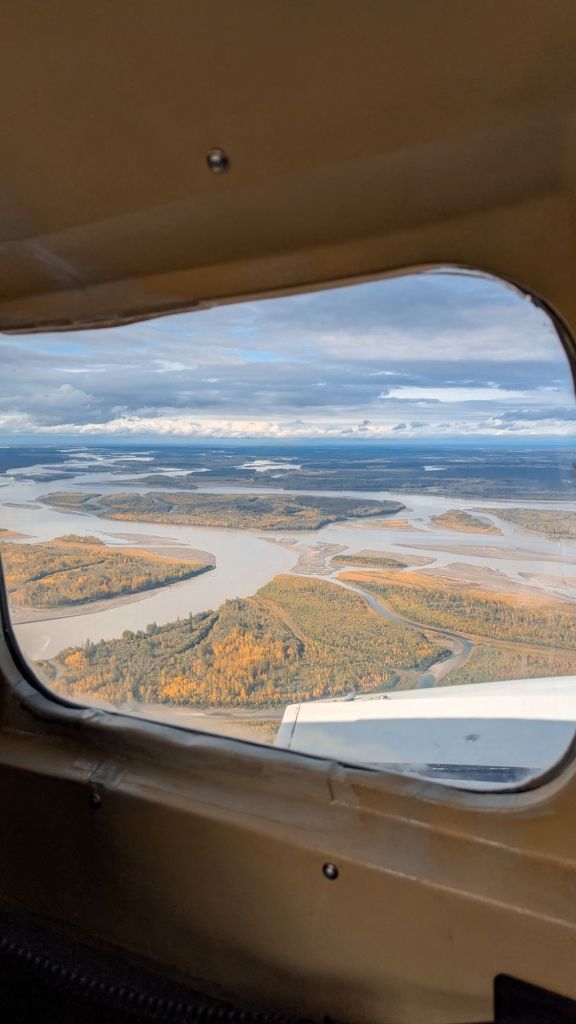 Heute geht es mit einem Kleinflugzeug in den nördlichen Polarkreis. Noch nie war ich so hoch im Norden. Während rund einer Stunde fliegen wir über die farbige Wildniss. Was für ein Erlebnis. Unser Ziel ist Fort Yukon. Eines der vielen abgelegenen Siedlungen im Norden Alaskas. In Alaska sind nichtmal 1% der Fläche besiedelt. Der Rest ist Wildniss. Viele Landesteile sind zudem nur über den Luft oder Wasserweg erreichbar. So auch Fort Yukon. Nach einer Stunde zeigen sich die ersten kleinen Häuschen im Wald und eine Schotterstrasse ist der Landeplatz. Am Boden werden wir auch vom selbst ernannten Bürgermeister und Tourguide begrüsst. Später stellt sich heraus, dass er auch Sheriff und Trainer der örtlichen Fussballmannschaft ist. Hier leben ca. 300 Leute und die wenigen die wir gesehen haben, standen unter Alkoholeinfluss. Zugegeben, das würde mir hier wohl auch passieren, ist die Gegend doch ca. 9 Monate im Jahr mit Schnee bedeckt. Vor jedem Haus stehen diverse ausrangierte Pickups und Schneemobile. Alte Autos werden als Ersatzteillager gebraucht, denn im Winter ist das Dorf oftmals von der Aussenwelt abgeschnitten. Ein Liter Orangensaft kostet hier 15 USD und ein Apfel 5 USD. Ich würde hier bankrott gehen, während ich an einem Alkoholproblem erkranke und irgendwo zwischen drin wohl kläglich erfrieren würde.